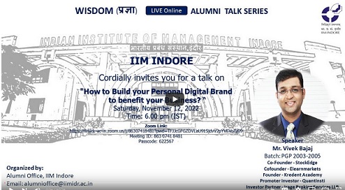 Wisdom-प्रज्ञा: Mr. Vivek Bajaj, (PGP 2003-2005), Co-Founder - StockEdge & Elearnmarkets (Talk #19)