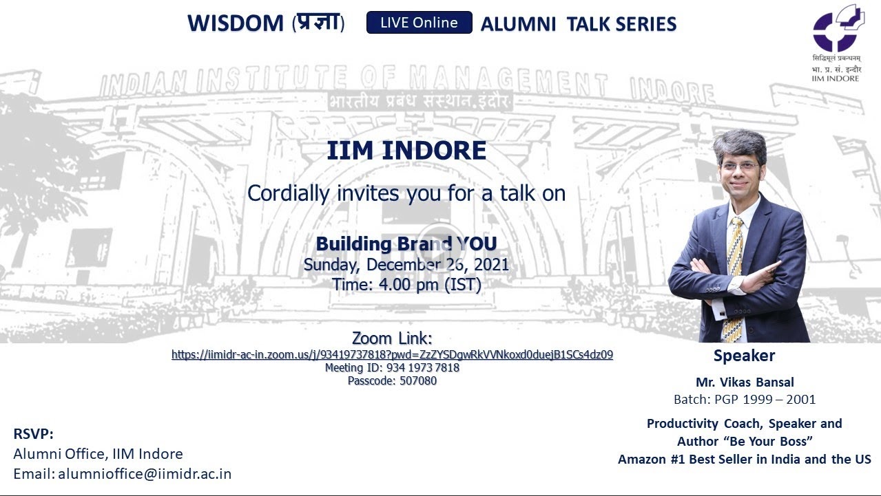 Wisdom - प्रज्ञा: The Alumni Talk Series - A message from Prof. Himanshu Rai, Director, IIM Indore