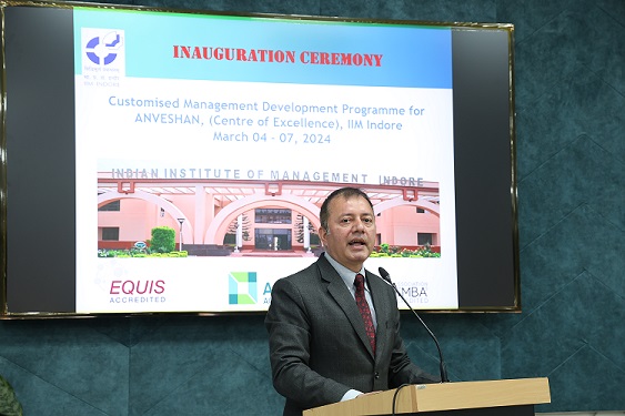 The fourth batch of the Customized Management Development Programme (MDP) for senior officials under IIM Indore’s Centre of Excellence ANVESHAN, began on March 05, 2024. The four day programme aimed at enhancing the capacity of senior officials from various municipalities across the nation was inaugurated by Director, Prof. Himanshu Rai. Prof. Subin Sudhir, Chair- Executive Education and Prof. Shruti Tewari, Programme Coordinator was also present on this occasion.