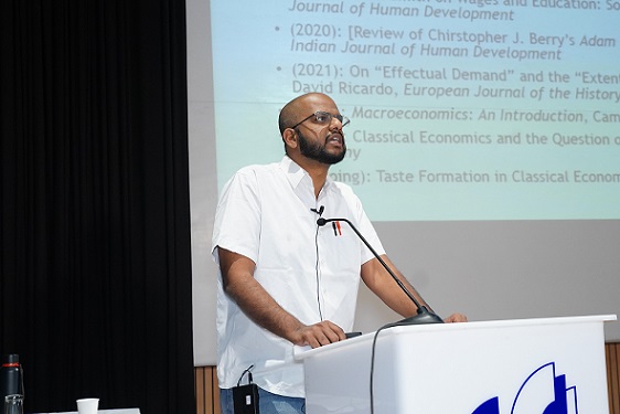 Prof. Alex Thomas discussed about Adam Smith and Classical Political Economy. He said that Adam Smith’s concepts are usually misinterpreted today; thus, it is essential to understand the context in which Smith wrote his concepts. For this, it is imperative to pay attention to the intellectual landscape of economics today, which is predominantly understood as a supply and demand approach only. He mentioned that Smith believed education has to be publicly supported and that it is the key to moral and social benefits. ‘Smith emphasized that education enables a person to gain wisdom, understand moral sentiments and help a person gain self-respect’, Prof. Thomas explained.