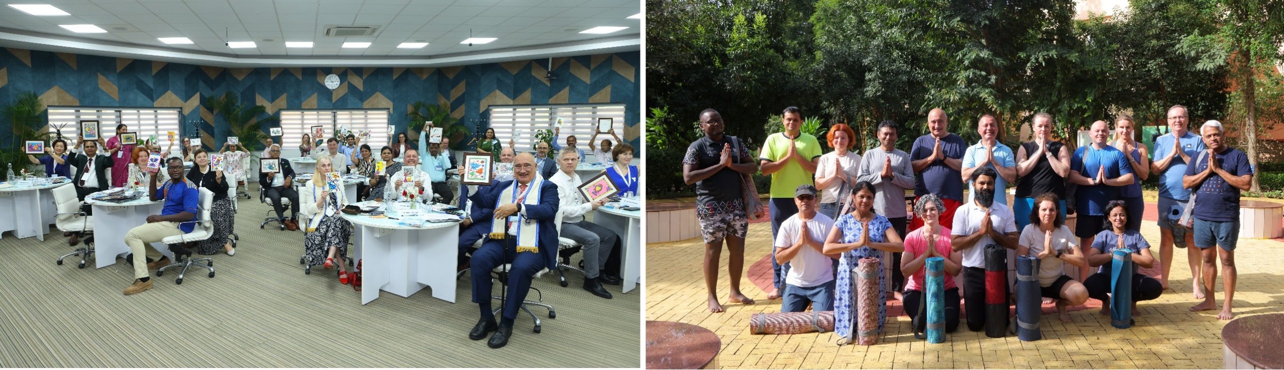 A rejuvenating yoga session led by Prof. Himanshu Rai was also held in the serene Spiritual Garden, where international delegates participated in a meditative practice that emphasized mindfulness, balance, and harmony, the very principles that reflect IIM Indore’s vision for global collaboration rooted in awareness and well-being. This created a sense of unity and reflection, setting a meaningful tone for the day’s engagements.