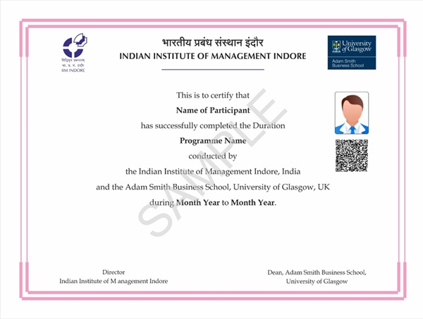 Please note that IIM Indore reserves the right to change the programme design, format, number of sessions, certificate format, terms in the programme or can incorporate any such change deemed necessary by the institute without prior intimation.